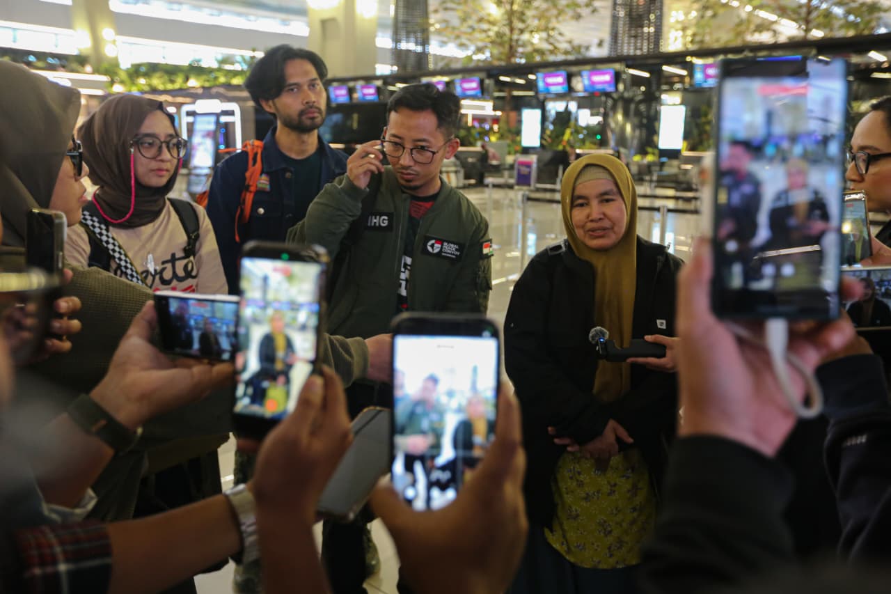 Pelepasan relawan dilakukan di Bandara Soekarno-Hatta pada Rabu (8/4/2026). Dalam kesempatan tersebut, Koordinator GPCI Maimon Herawati bersama Dewan Pengarah GPCI Muhammad Husein serta delegasi Indonesia Adhin Abdul Hakim dan Marsha Chikita Fawzi menyampaikan keterangan pers sebelum keberangkatan.